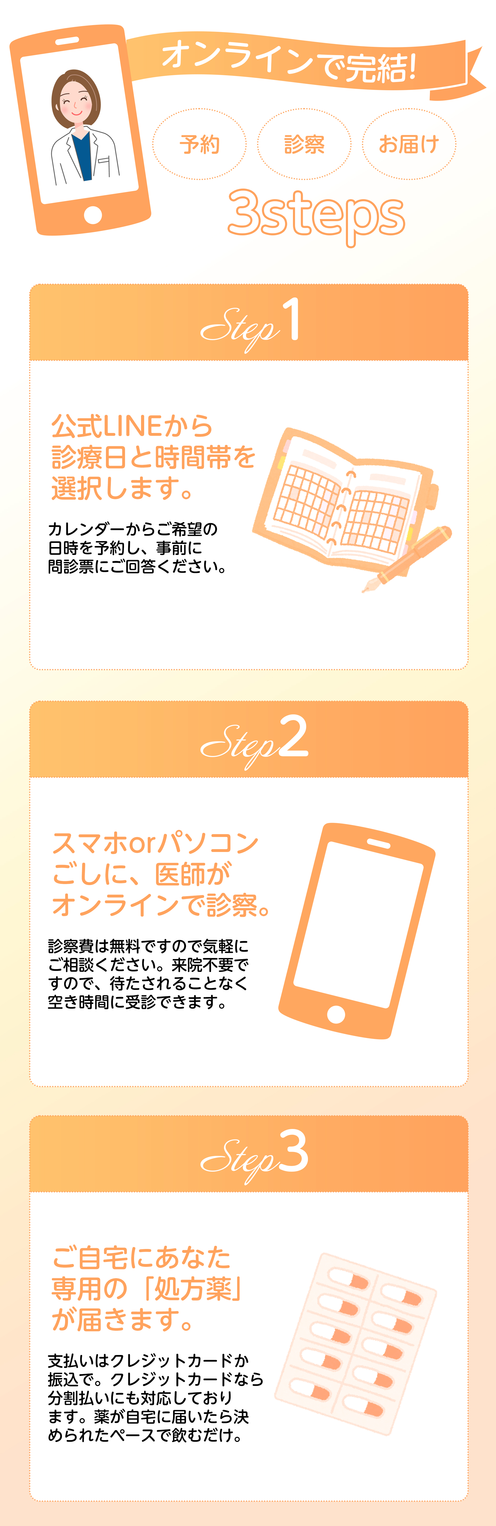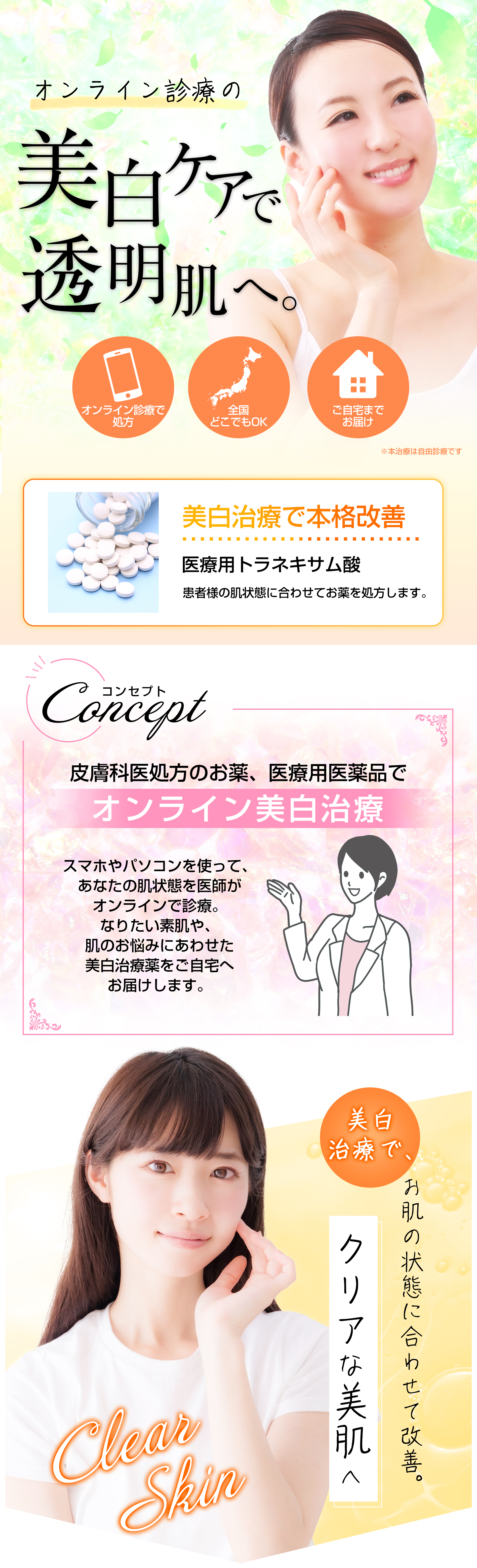 美肌のプロである医師が監修。お手持ちのスマホやパソコンを通してお肌の状態を診断します。あなたのお肌に必要な医薬品を処方し、ご自宅までお届けするサービスです。